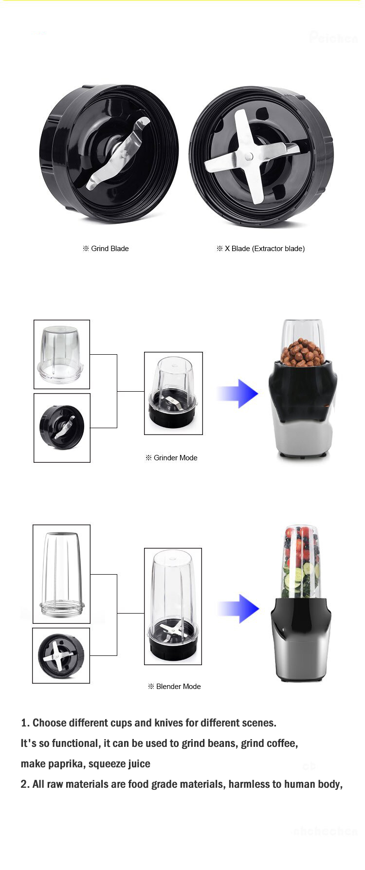 関数: スパイス、コーヒー豆、にんにくなどを挽くのに最適です。ブレンドドリンクの調合、果汁の抽出など。